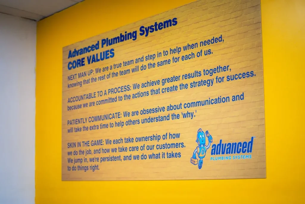 At Advanced Plumbing Systems, LLC, our purpose is to educate homeowners and make their plumbing systems worry-free by communicating every step of the way. We pride ourselves on being a true team—living out our “Next Man Up” mindset by stepping in to help whenever needed, knowing our teammates will do the same for us. We are accountable to a process, committed to the actions that drive consistent, successful outcomes. Clear, patient communication is at the core of everything we do; we take the time to ensure our customers and team understand the “why” behind our work. With “skin in the game,” each of us takes ownership of how we do the job and how we care for our customers, approaching every task with persistence and a commitment to doing it right.